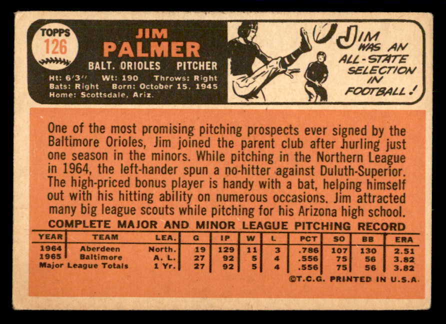 1966 Topps Baseball #126 Jim Palmer Orioles VG 540897