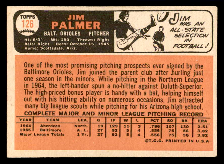 1966 Topps Baseball #126 Jim Palmer Orioles VG-EX 540895