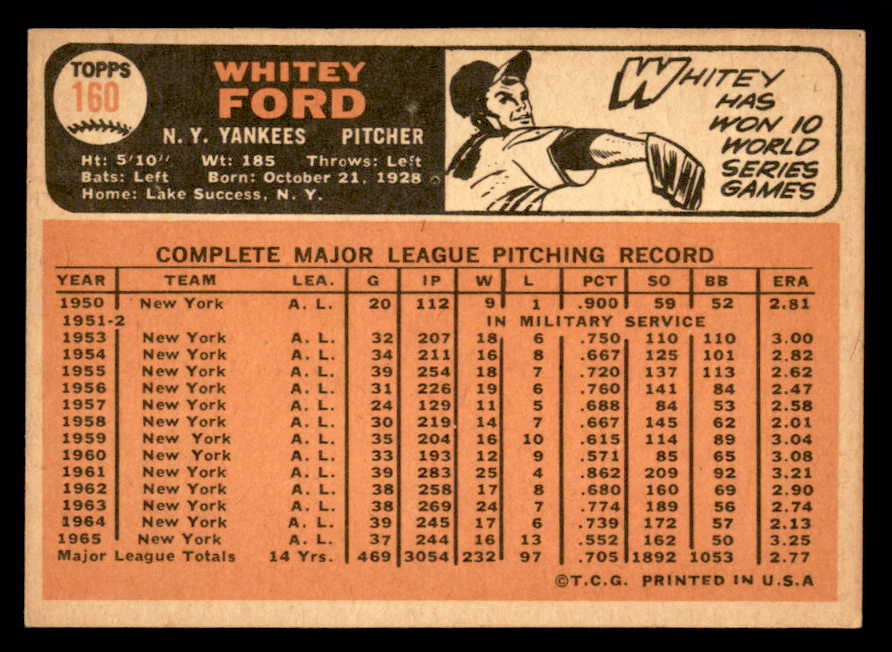 1966 Topps Baseball #160 Whitey Ford Yankees EX-MT 546218
