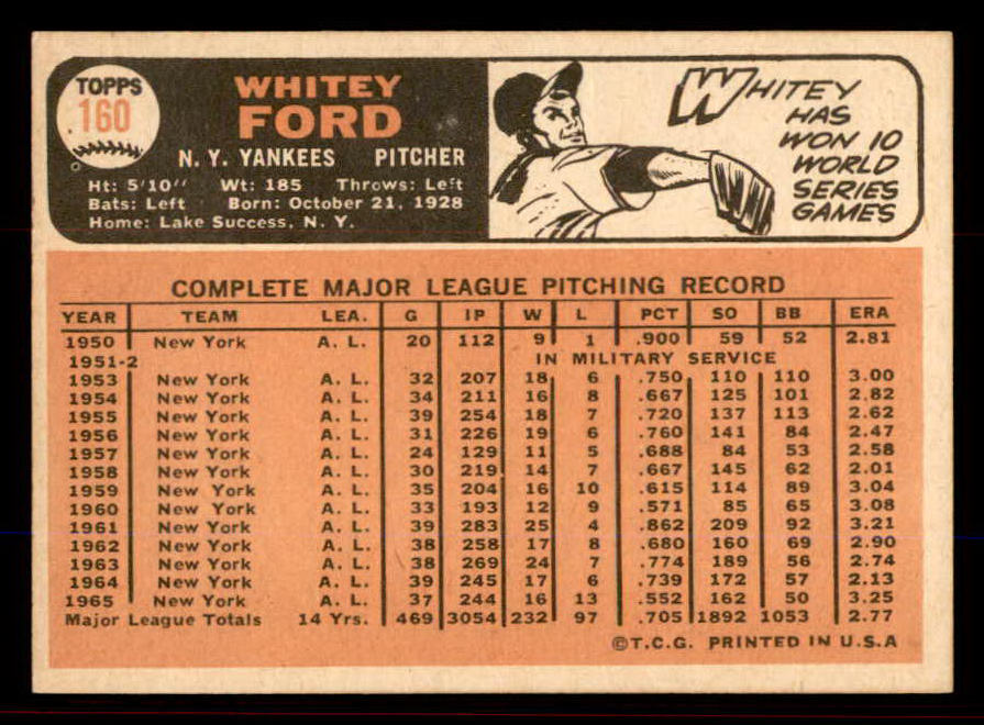 1966 Topps Baseball #160 Whitey Ford Yankees NR-MT 545471