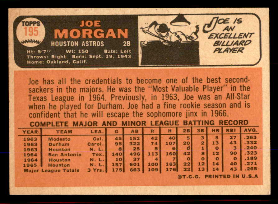 1966 Topps Baseball #195 Joe Morgan Astros NR-MT 545545