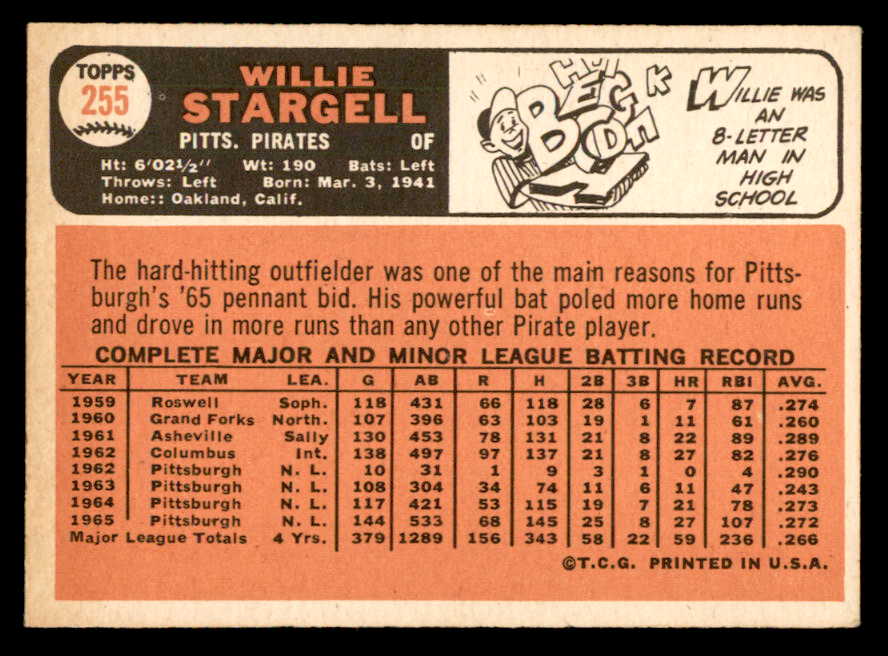 1966 Topps Baseball #255 Willie Stargell Pirates EX-MT 547070