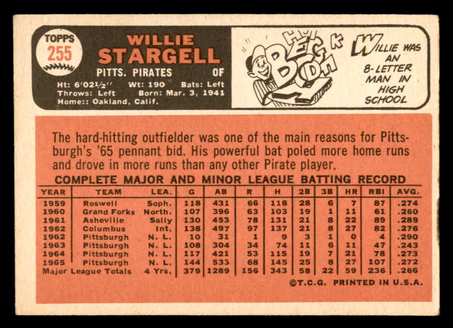 1966 Topps Baseball #255 Willie Stargell Pirates VG-EX 546206