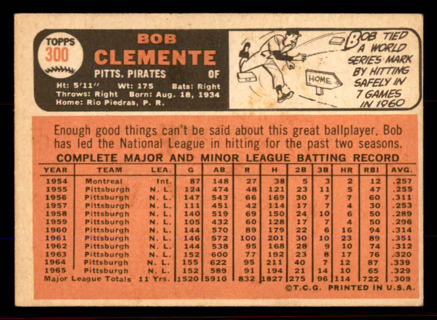 1966 Topps Baseball #300 Roberto Clemente Pirates VG-EX 545469
