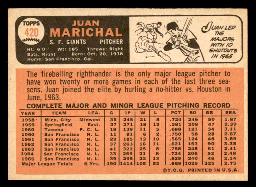 1966 Topps Baseball #420 Juan Marichal Giants EX-MT 546213