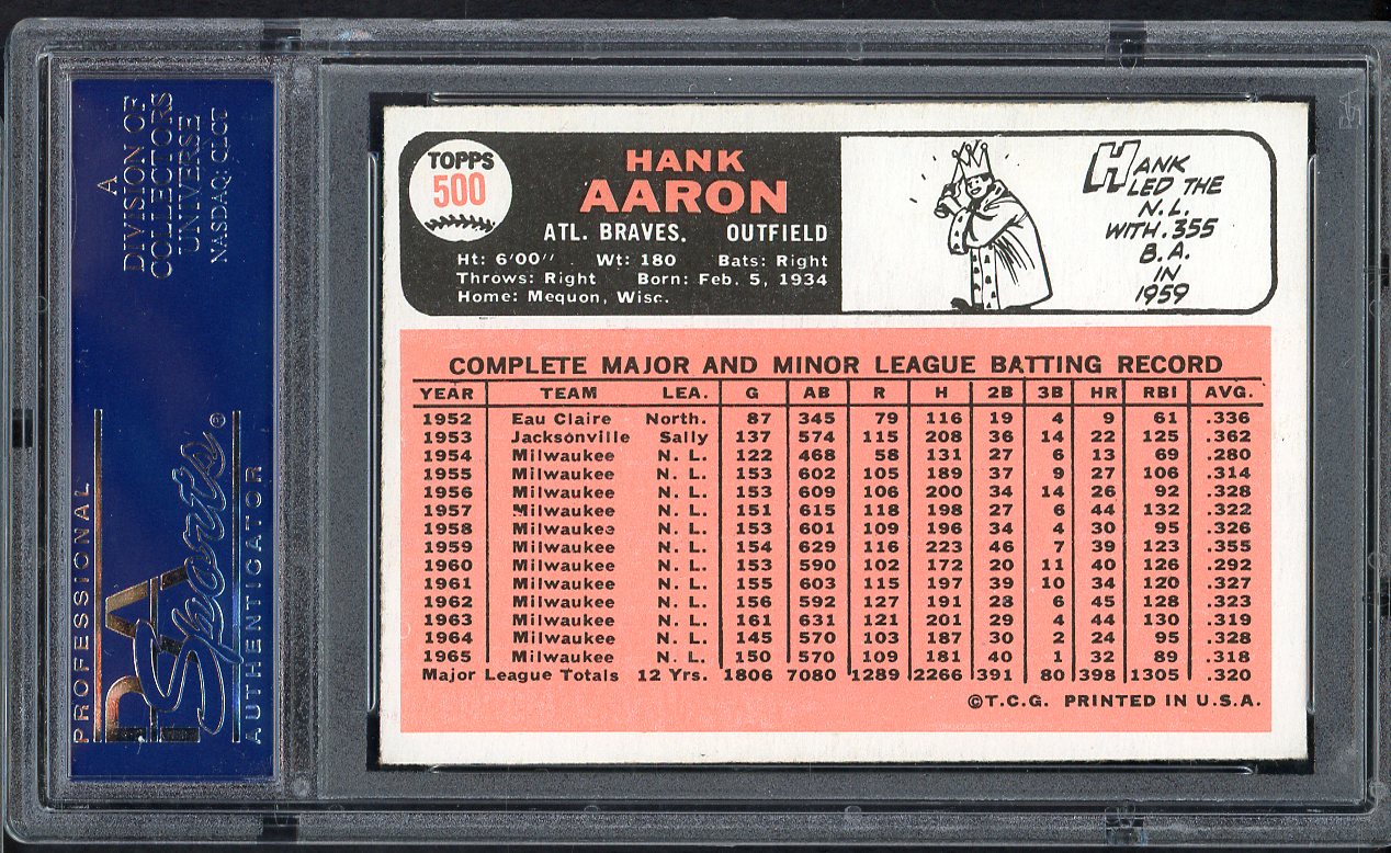 1966 Topps Baseball #500 Hank Aaron Braves PSA 5 EX 545326