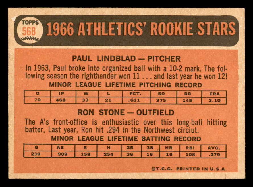 1966 Topps Baseball #568 Paul Lindblad A's VG-EX/EX 542945