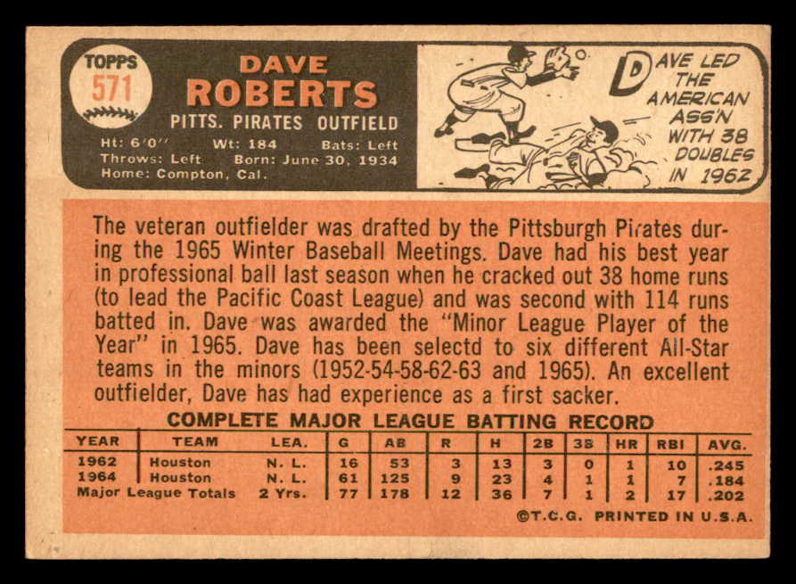 1966 Topps Baseball #571 Dave Roberts Pirates VG-EX/EX 542946