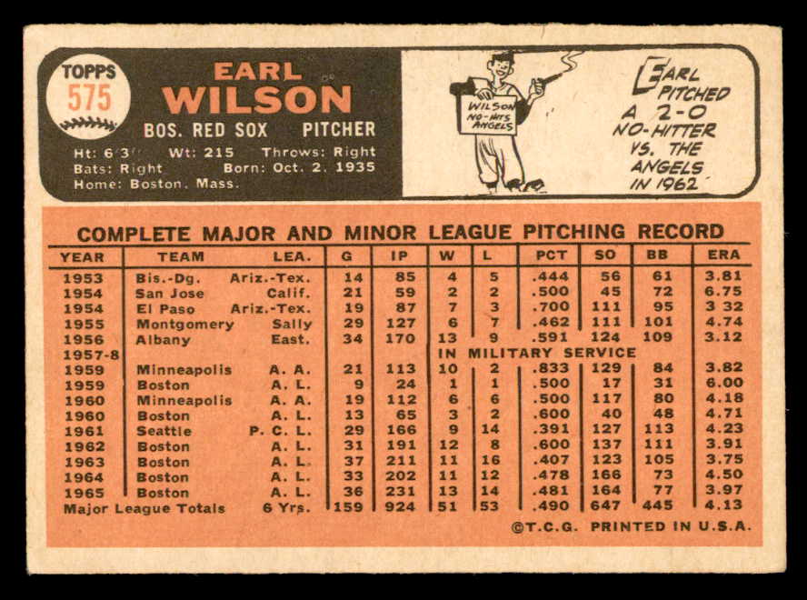 1966 Topps Baseball #575 Earl Wilson Red Sox VG-EX 544518