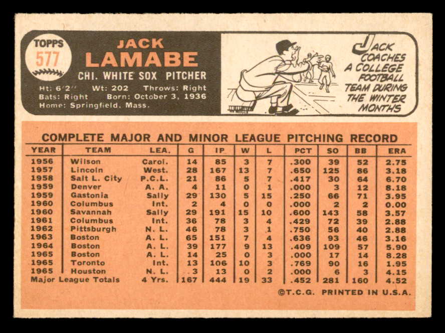 1966 Topps Baseball #577 Jack Lamabe White Sox VG-EX 544522