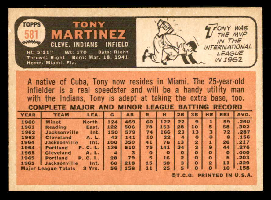 1966 Topps Baseball #581 Tony Martinez Indians EX-MT 548149