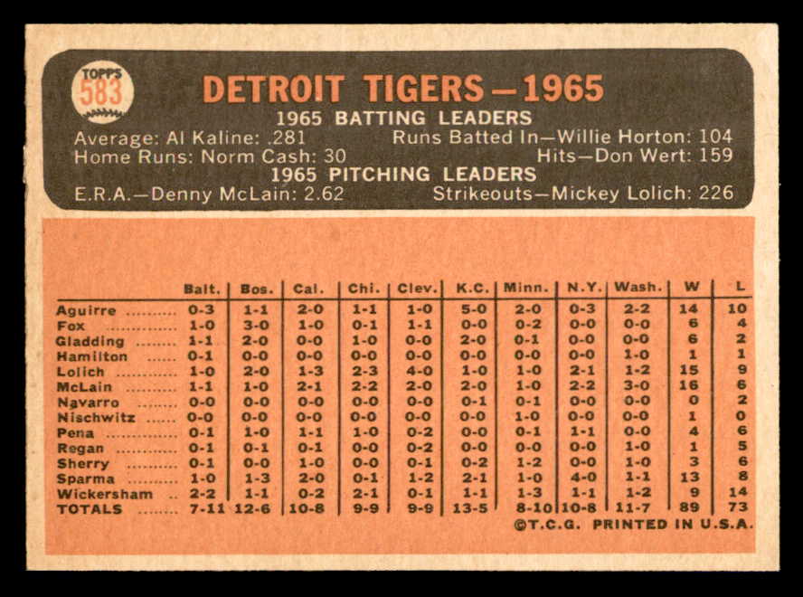 1966 Topps Baseball #583 Detroit Tigers Team EX-MT 544530