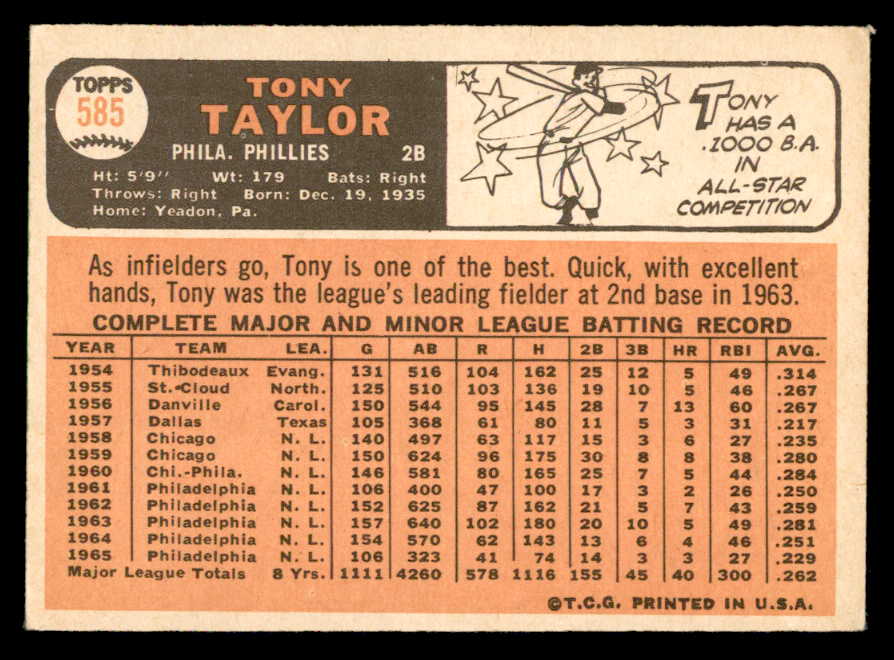 1966 Topps Baseball #585 Tony Taylor Phillies EX 544533