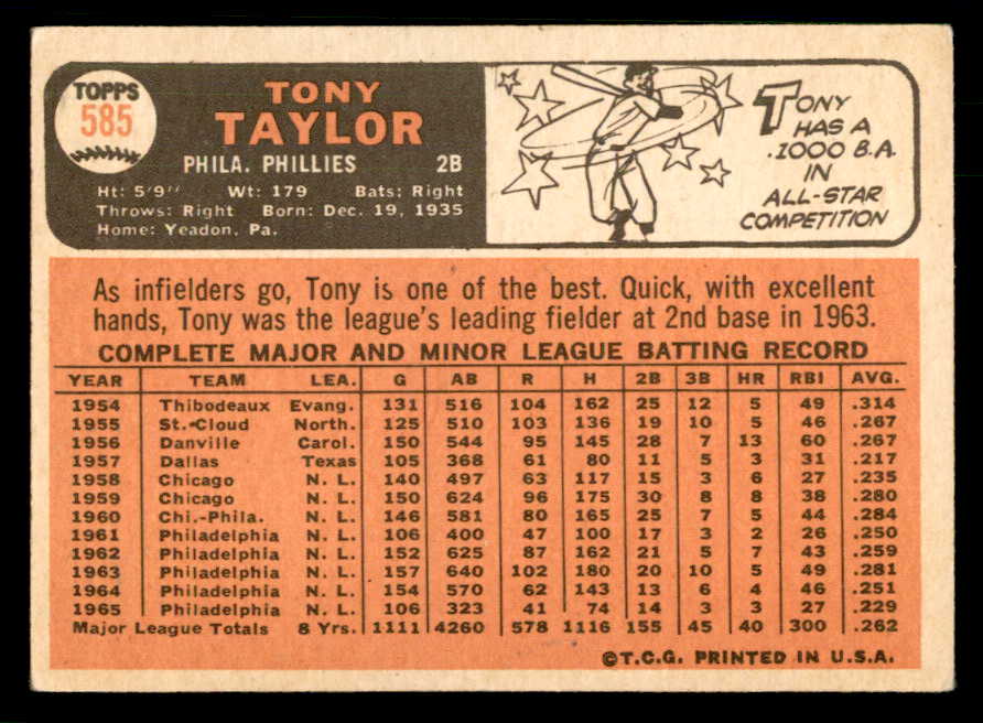 1966 Topps Baseball #585 Tony Taylor Phillies VG-EX 548129