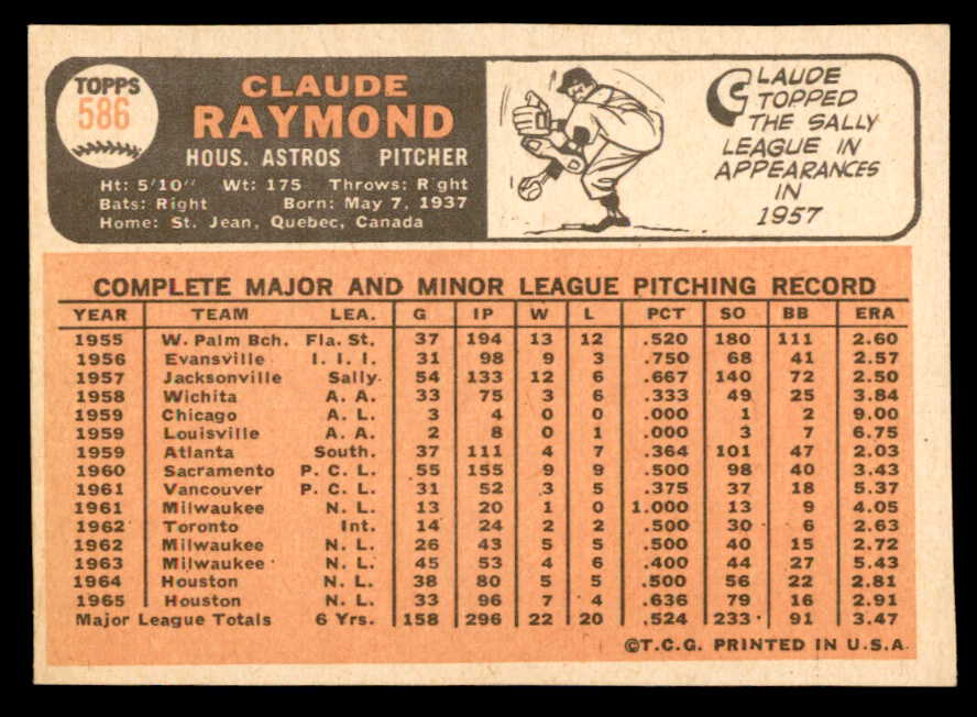 1966 Topps Baseball #586 Claude Raymond Astros EX-MT 544534