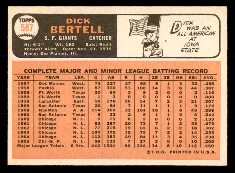 1966 Topps Baseball #587 Dick Bertell Giants EX-MT 547990