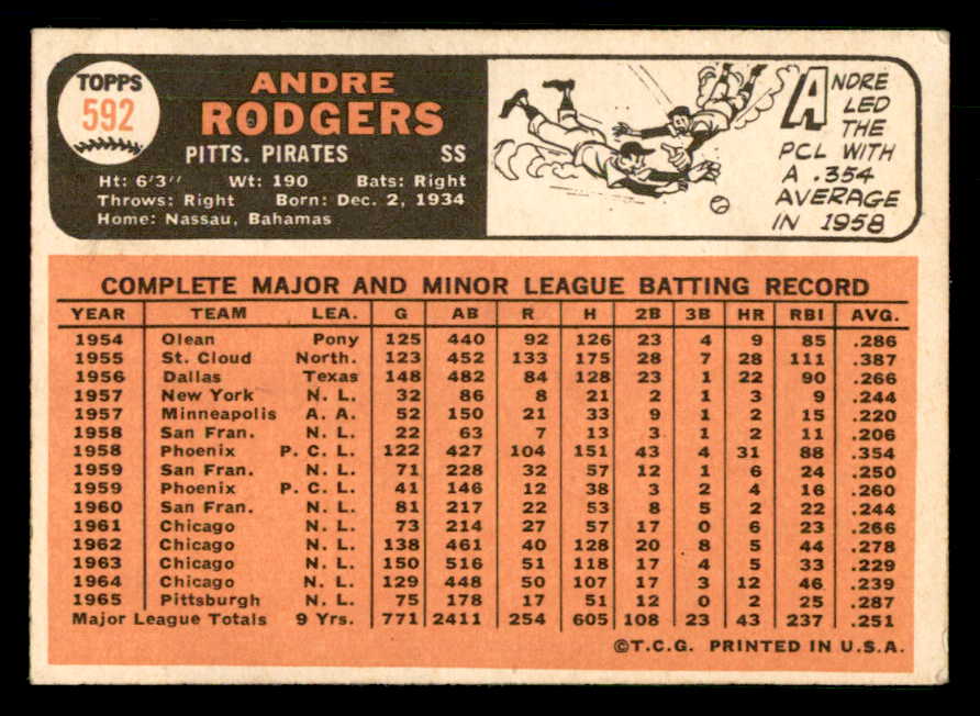 1966 Topps Baseball #592 Andre Rodgers Pirates EX+/EX-MT 548120