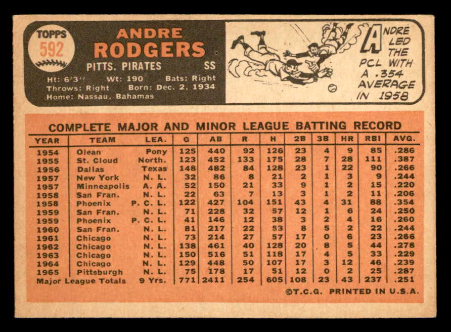 1966 Topps Baseball #592 Andre Rodgers Pirates EX-MT 544540