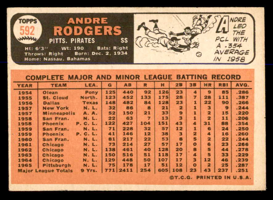1966 Topps Baseball #592 Andre Rodgers Pirates EX-MT 547986