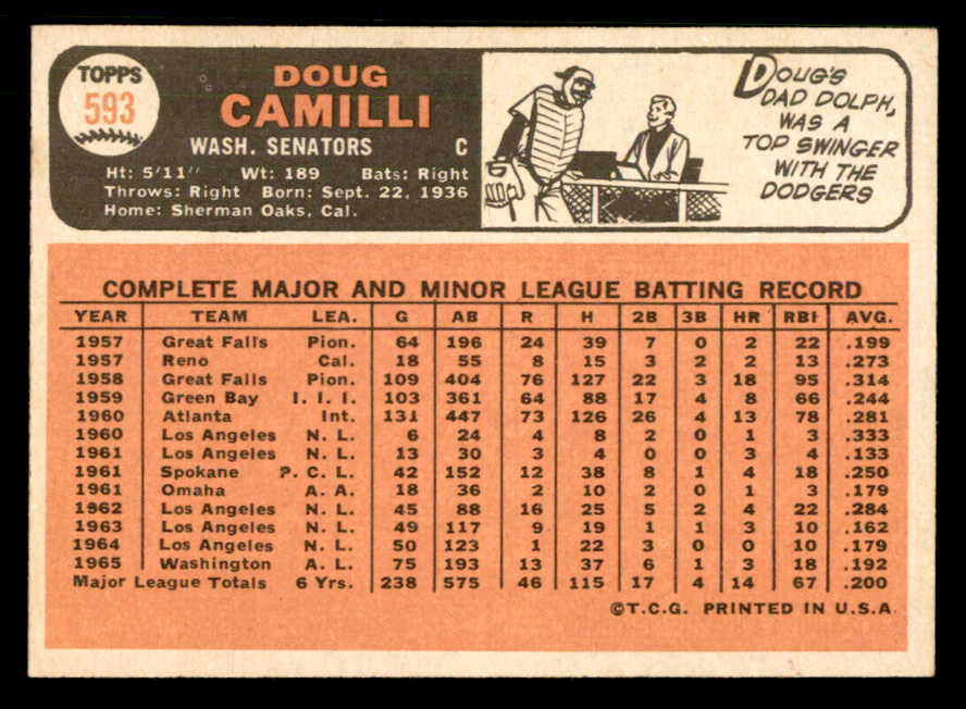 1966 Topps Baseball #593 Doug Camilli Senators EX-MT 548145