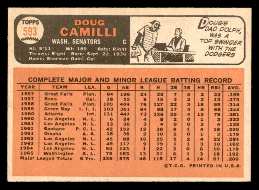 1966 Topps Baseball #593 Doug Camilli Senators VG-EX 544541