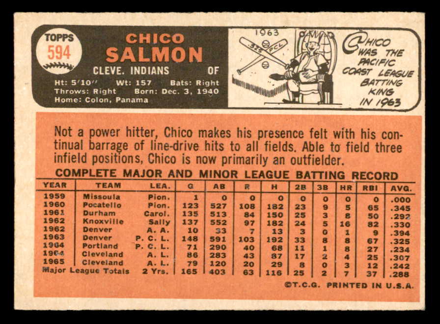 1966 Topps Baseball #594 Chico Salmon Indians EX 544542