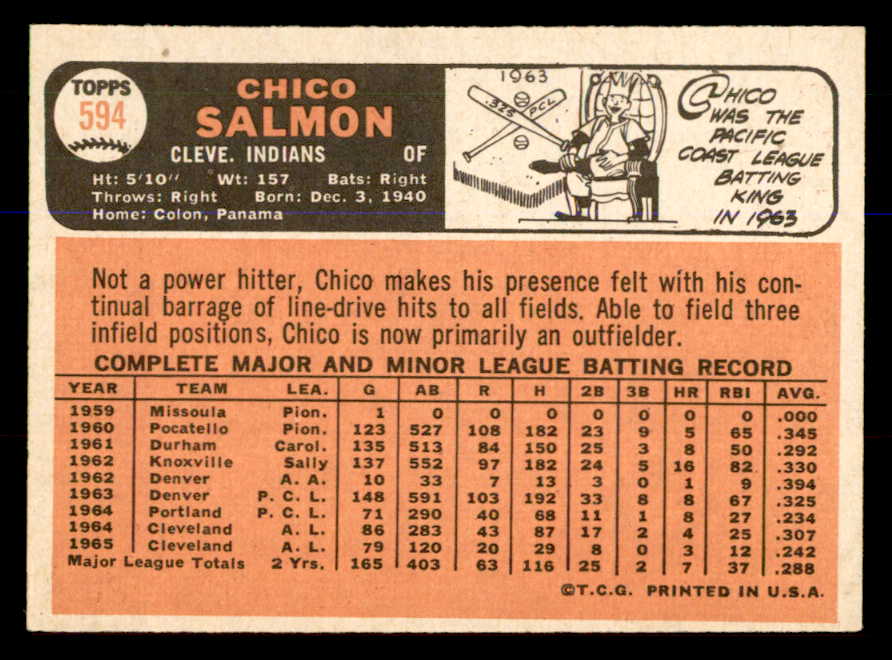 1966 Topps Baseball #594 Chico Salmon Indians EX-MT 547984