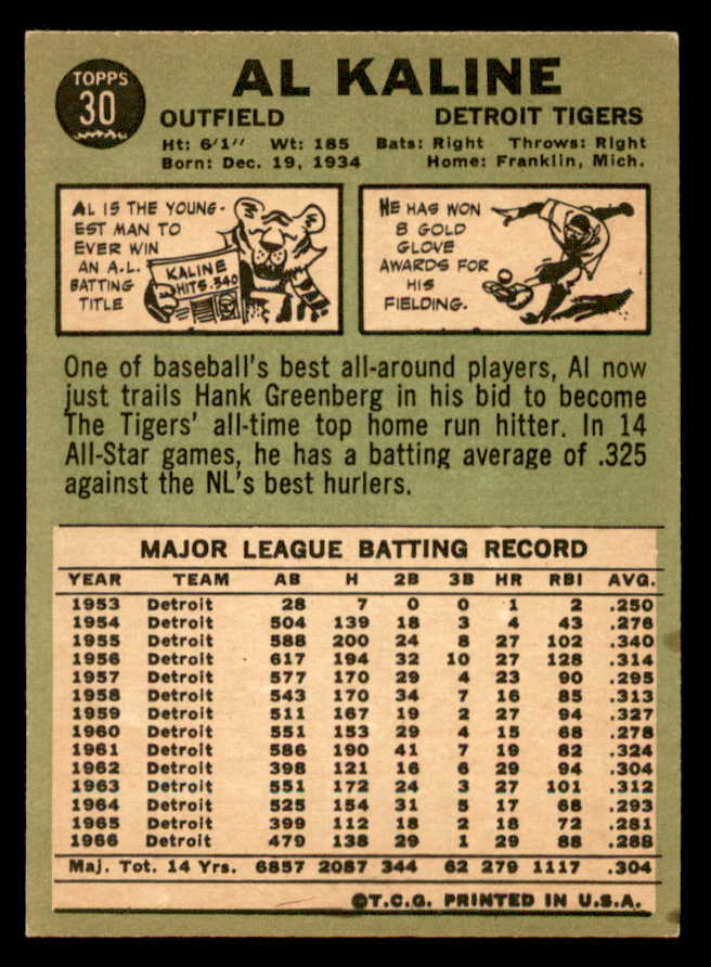 1967 Topps Baseball #030 Al Kaline Tigers EX+/EX-MT 546251