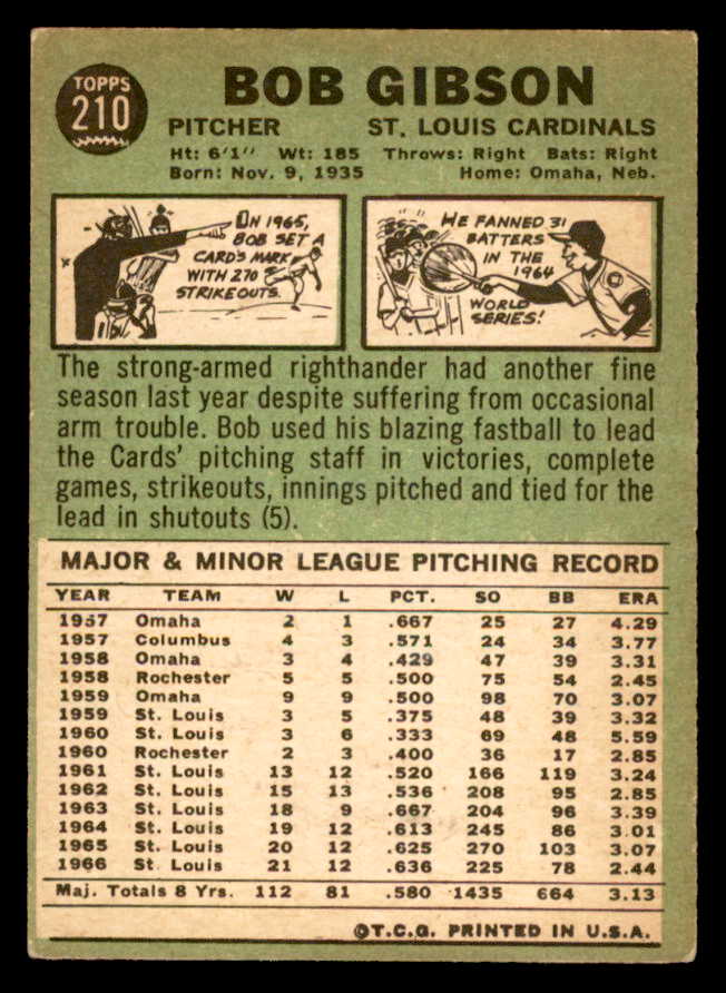 1967 Topps Baseball #210 Bob Gibson Cardinals VG-EX 539205
