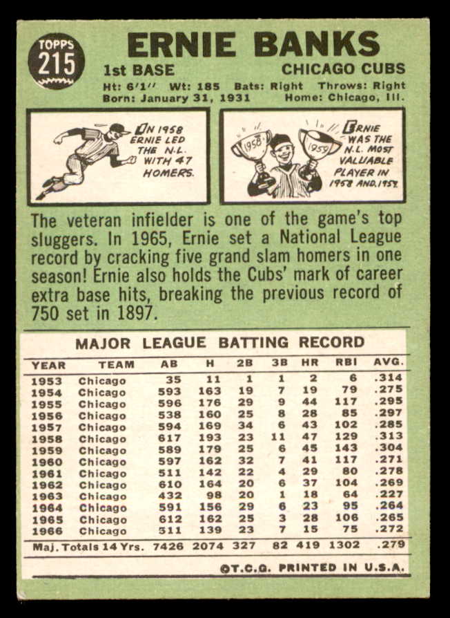 1967 Topps Baseball #215 Ernie Banks Cubs EX 546244