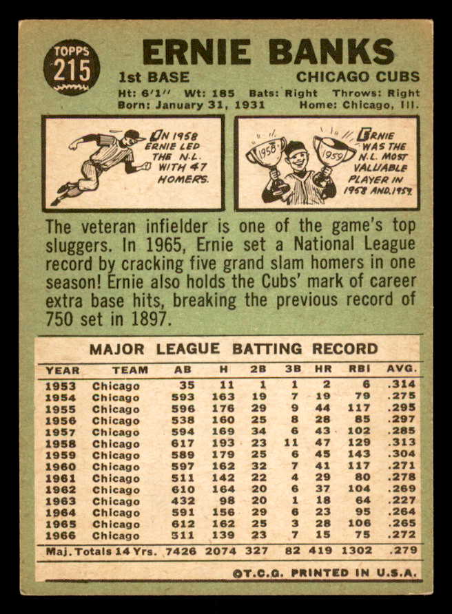 1967 Topps Baseball #215 Ernie Banks Cubs EX+/EX-MT 540984