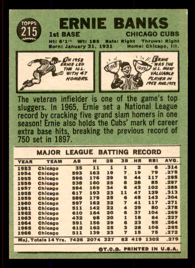 1967 Topps Baseball #215 Ernie Banks Cubs NR-MT 545380