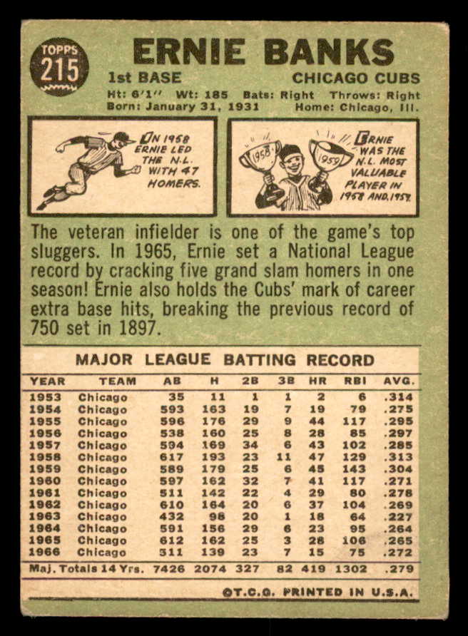 1967 Topps Baseball #215 Ernie Banks Cubs VG-EX 539822