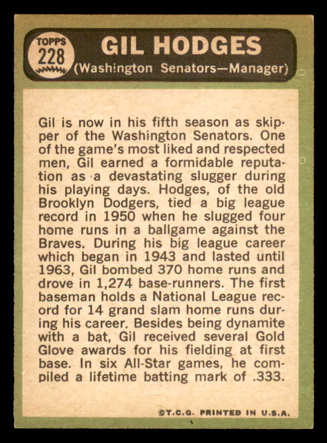 1967 Topps Baseball #228 Gil Hodges Senators EX-MT 543271