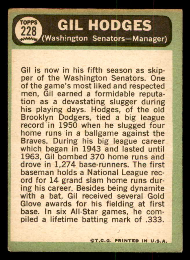 1967 Topps Baseball #228 Gil Hodges Senators VG 541332