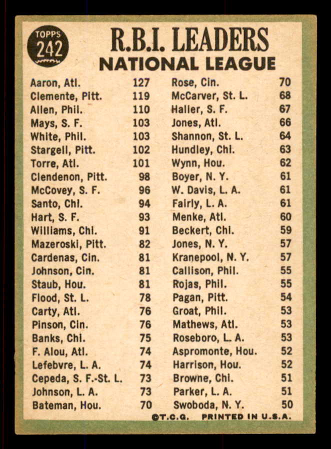 1967 Topps Baseball #242 N.L. RBI Leaders Aaron Clemente EX-MT 545386