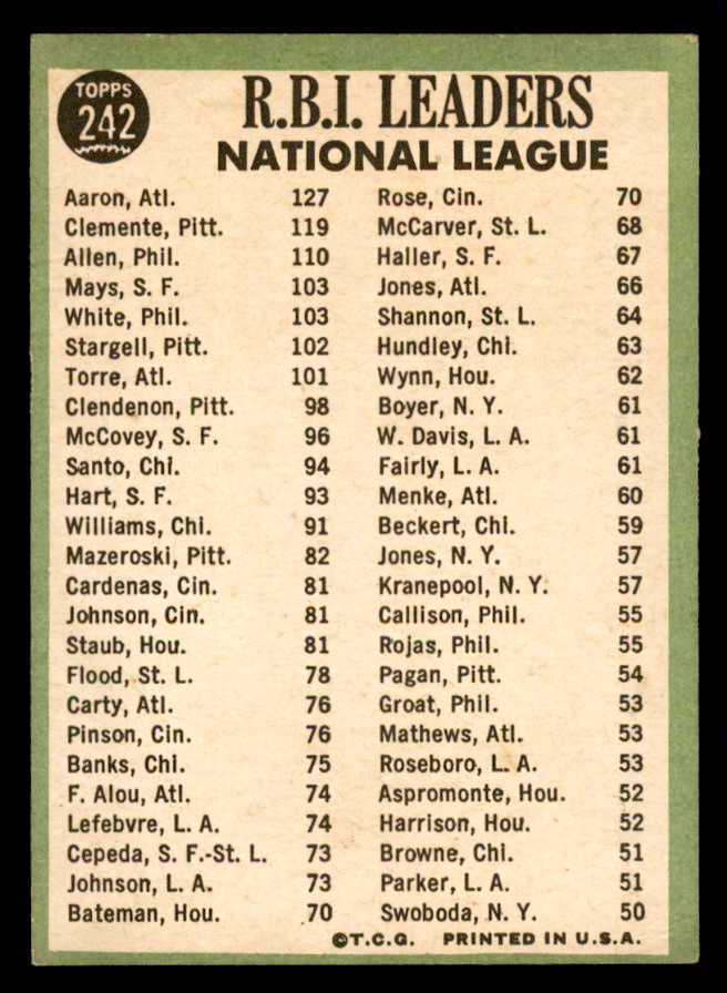1967 Topps Baseball #242 N.L. RBI Leaders Aaron Clemente VG-EX 540916