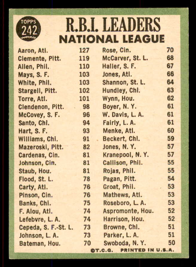 1967 Topps Baseball #242 N.L. RBI Leaders Aaron Clemente VG-EX 545780