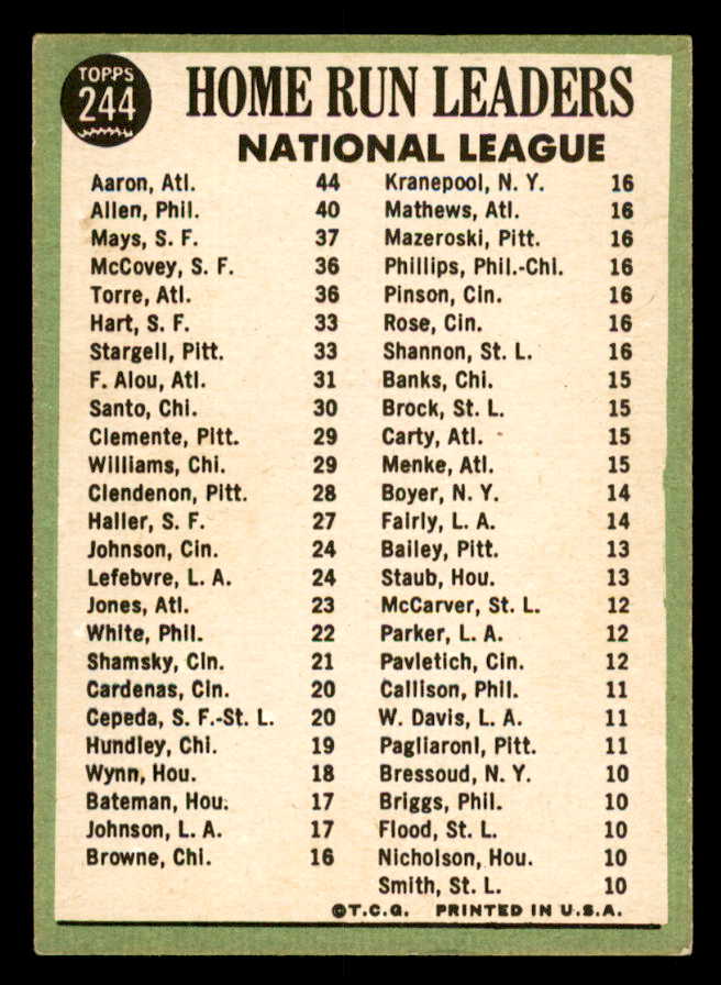 1967 Topps Baseball #244 N.L. Home Run Leaders Aaron Mays EX+/EX-MT 540915