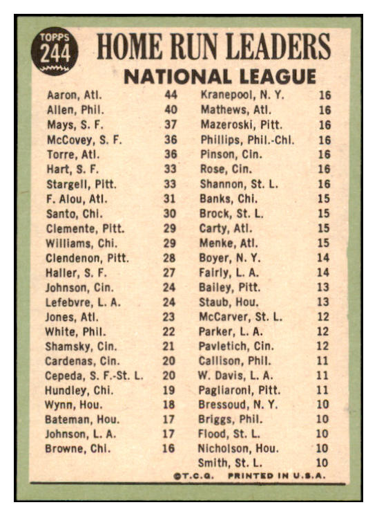 1967 Topps Baseball #244 N.L. Home Run Leaders Aaron Mays EX-MT 530912