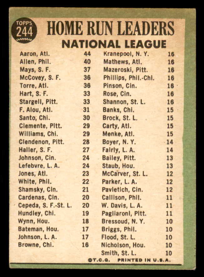 1967 Topps Baseball #244 N.L. Home Run Leaders Aaron Mays VG-EX 543283