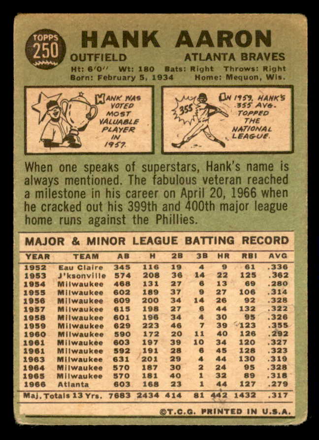 1967 Topps Baseball #250 Hank Aaron Braves FR-GD 540980