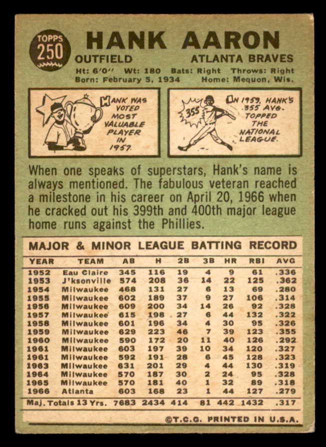 1967 Topps Baseball #250 Hank Aaron Braves VG-EX 539212
