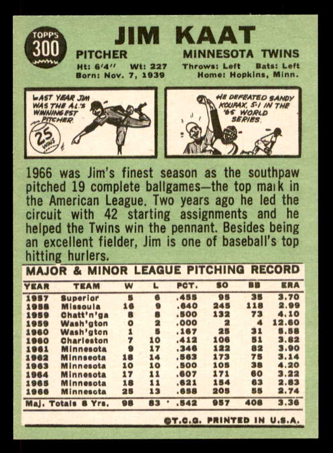 1967 Topps Baseball #300 Jim Kaat Twins NR-MT 546691