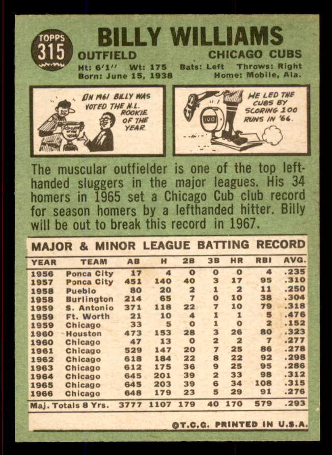1967 Topps Baseball #315 Billy Williams Cubs NR-MT 545792