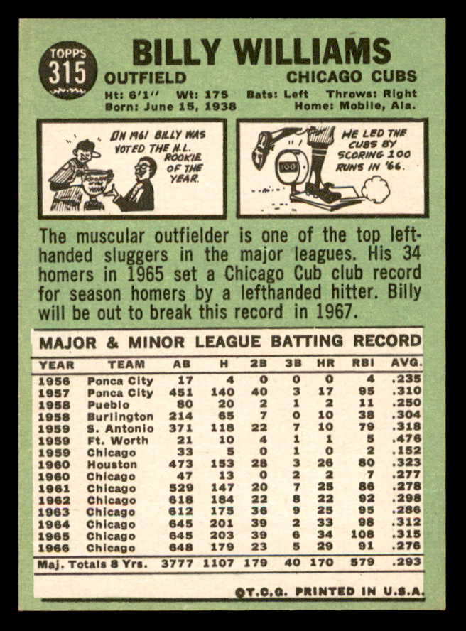 1967 Topps Baseball #315 Billy Williams Cubs NR-MT 546228