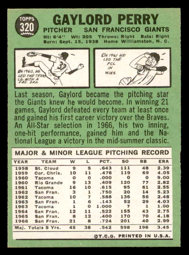1967 Topps Baseball #320 Gaylord Perry Giants EX-MT 546255