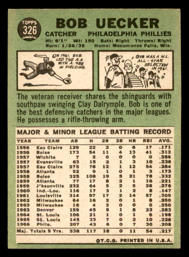 1967 Topps Baseball #326 Bob Uecker Phillies EX 546229