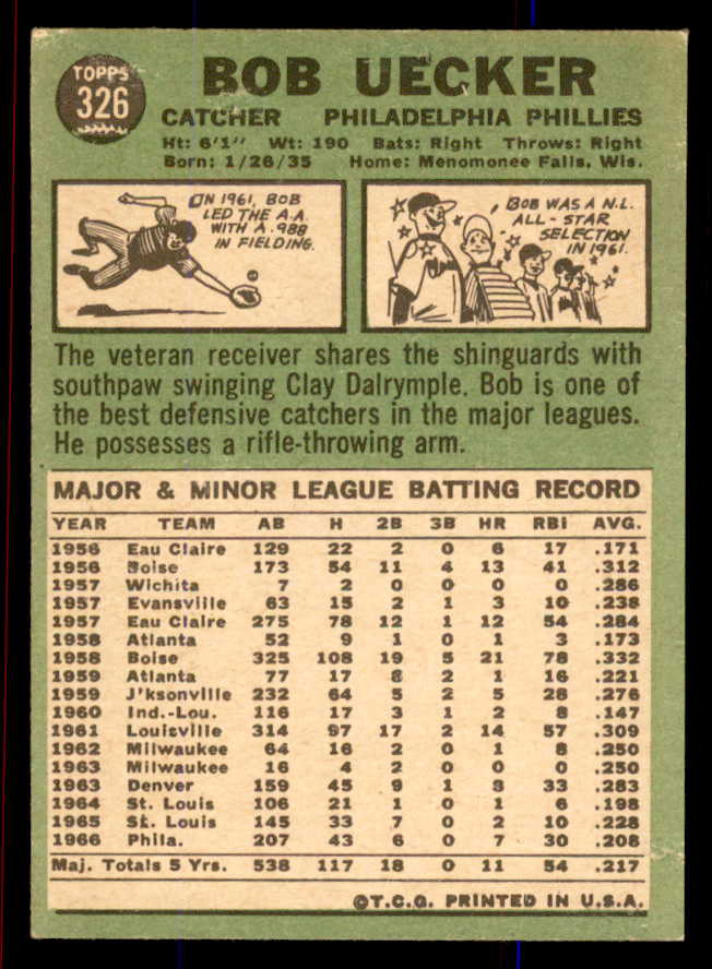 1967 Topps Baseball #326 Bob Uecker Phillies EX-MT 545786
