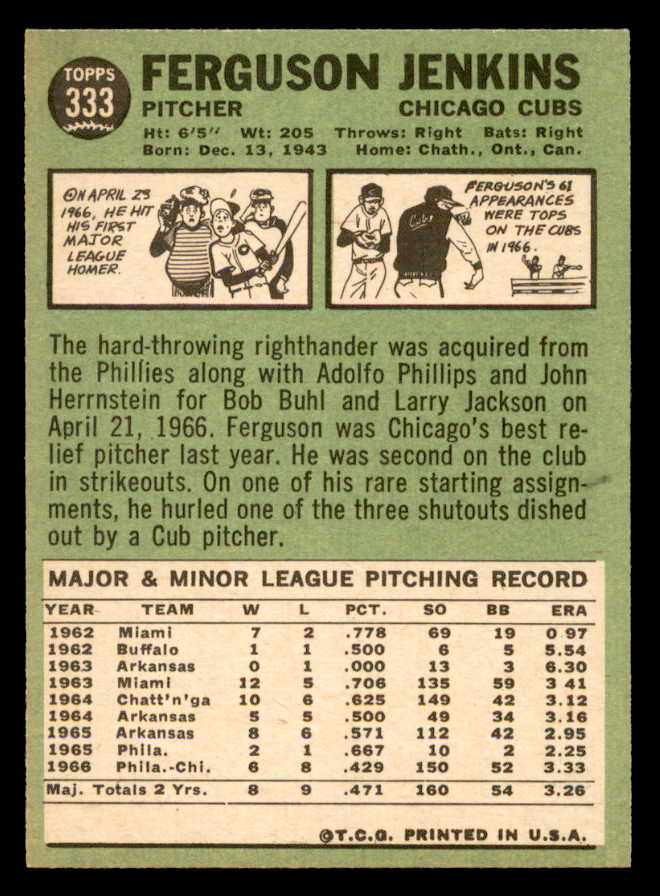 1967 Topps Baseball #333 Fergie Jenkins Cubs EX-MT 546247